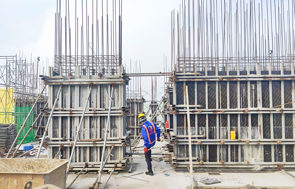 Tháp A – Thi công cốp pha, cốt thép cột tầng 26 lên 27