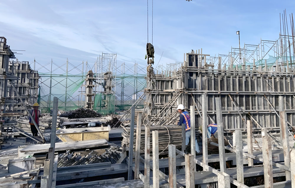 Tháp C – Thi công cốp pha cốt thép cột tầng 39 lên tầng mái