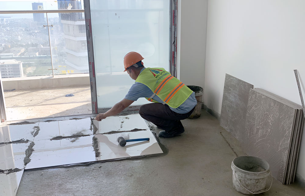 Tháp Tropical – Thi công lát gạch căn hộ tầng 34