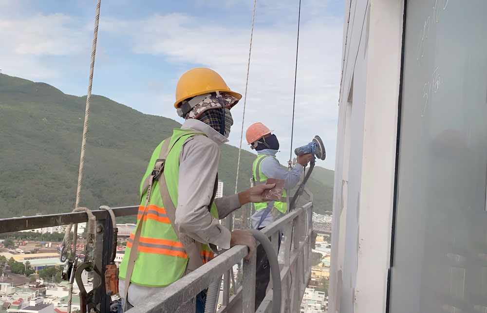Tháp Flamenco và tháp Tropical – Thi công sơn nước mặt ngoài