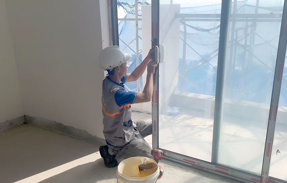 Tháp Flamenco – Thi công lắp cửa trong căn hộ tầng 17