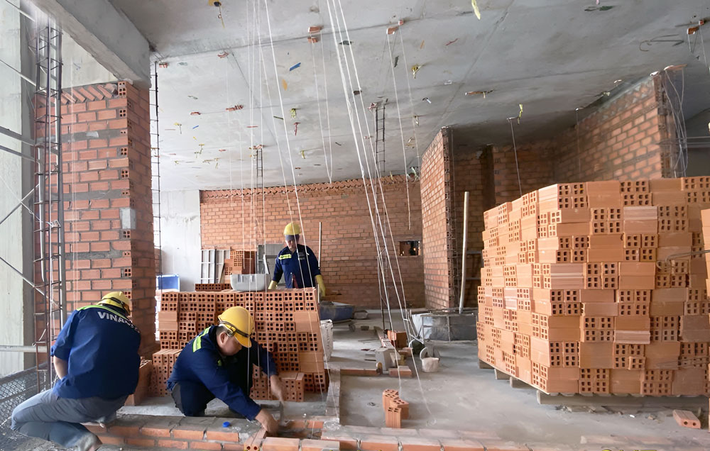 Tháp Kindly – Thi công xây tường căn hộ tầng 6