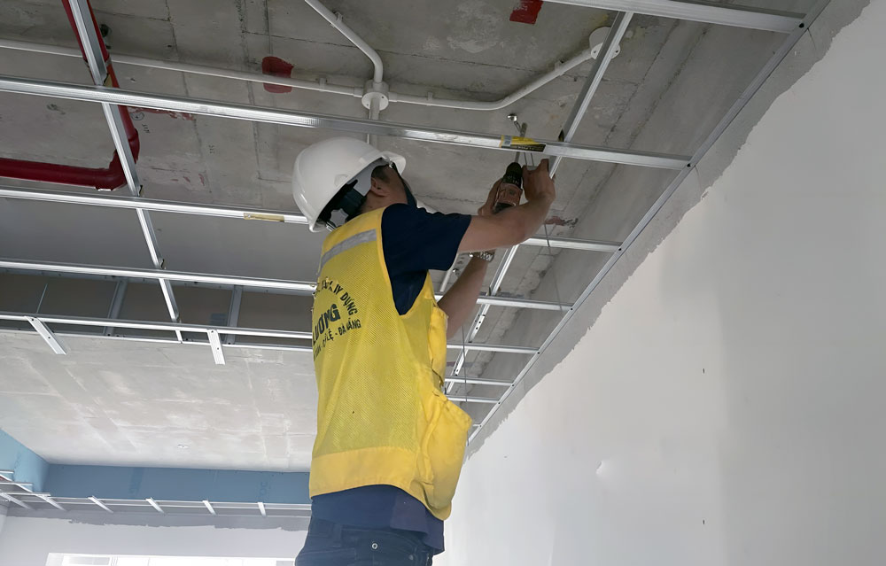 Tháp Sapphire và Topaz – Tiếp tục thi công đóng khung trần thạch cao tầng 26