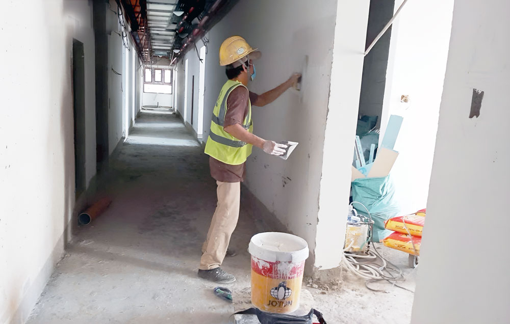 Tháp Ruby và Opal – Thi công bả ma tít hành lang tầng 23